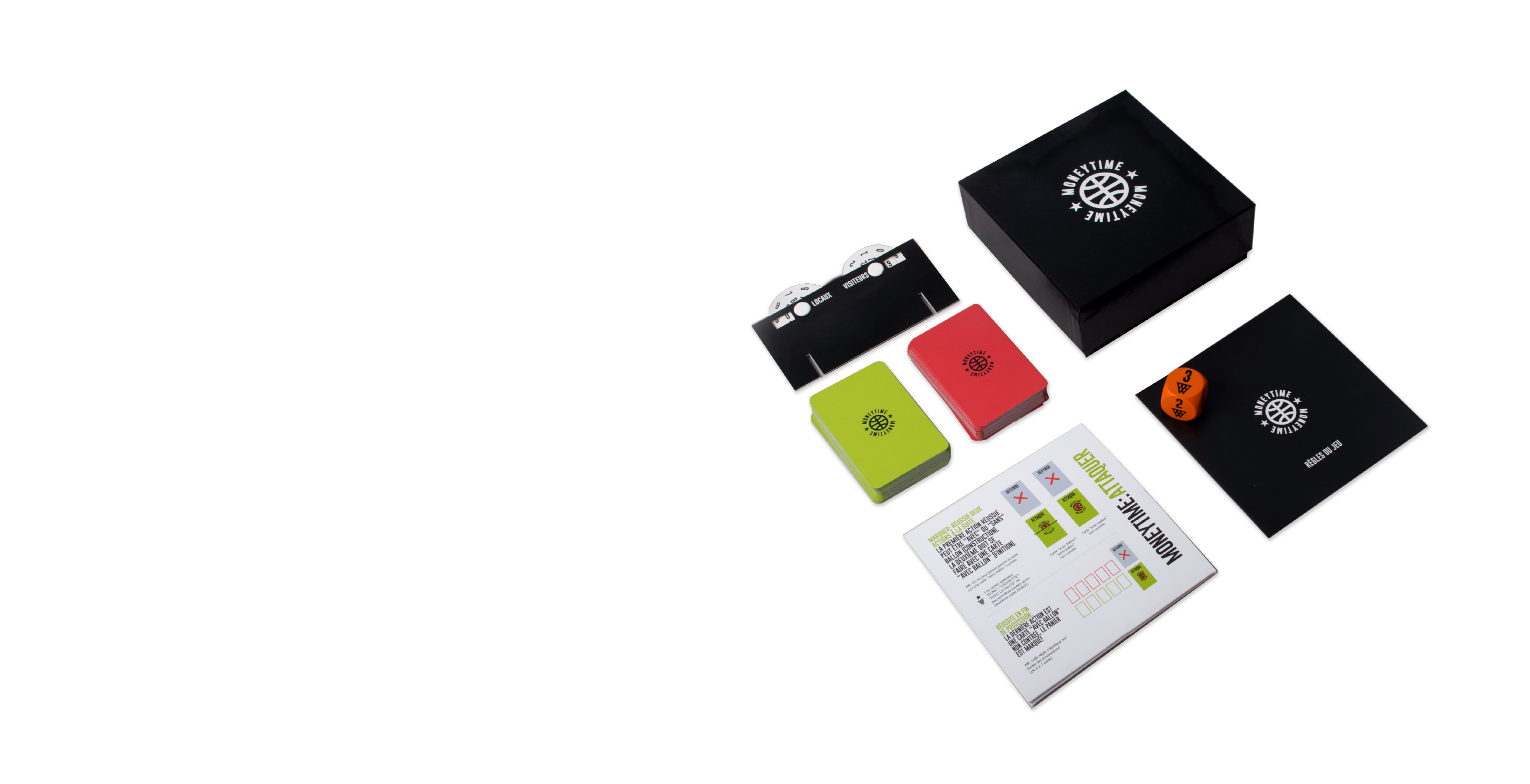 Facile à comprendre, un principe de jeu simple et des cartes spéciales pour faire de MONEYTIME du pur basket en boite, pour les novices comme les basketteurs confirmés.